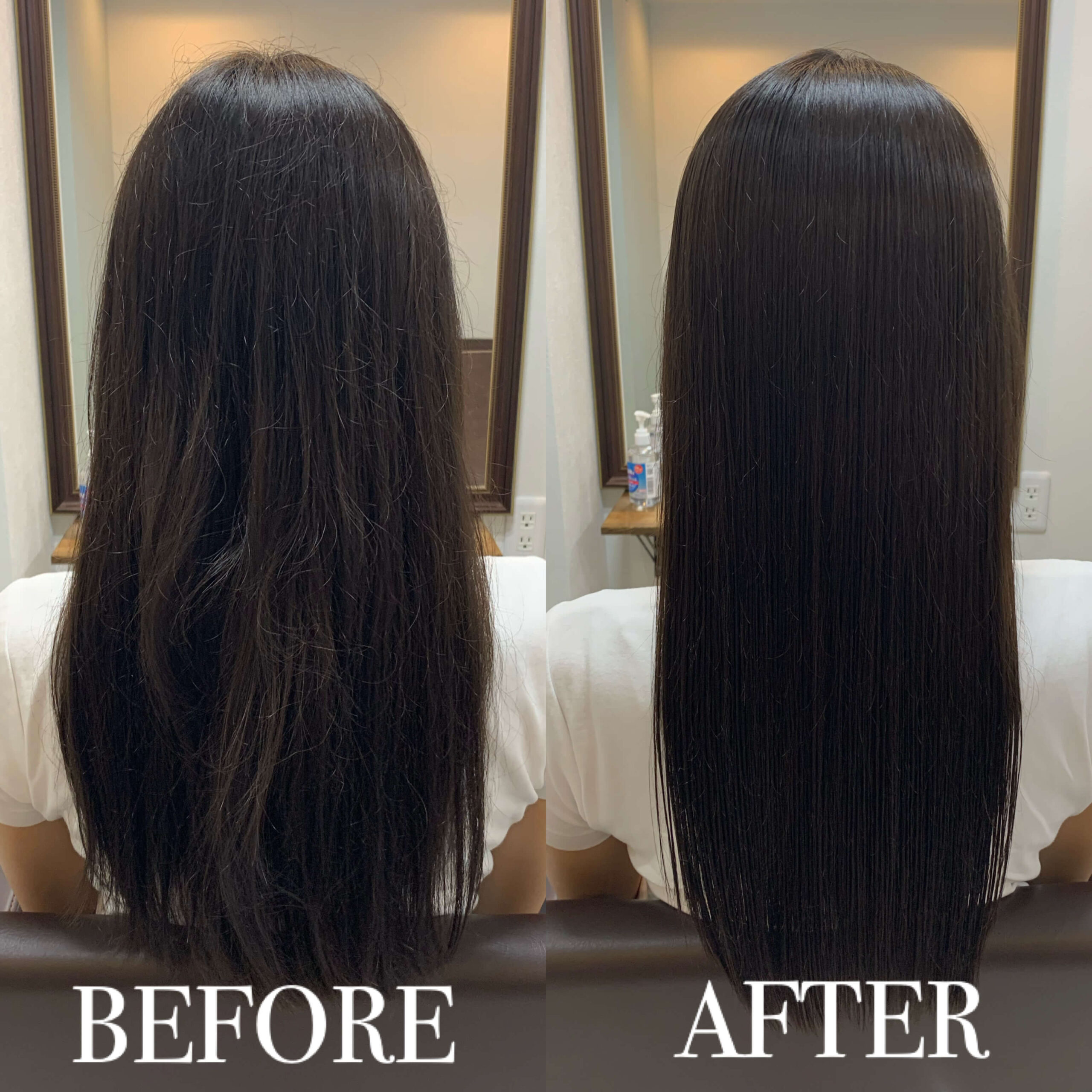 施術では髪の質感を薬剤でコントロールすることをメインに、髪本来のキレイさを色素&栄養を配合し調整しました。